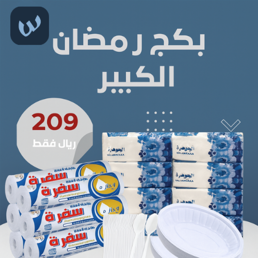 يوفر لك هذا البكج كل الأساسيات التي تحتاجها خلال الشهر الفضيل – من أدوات التقديم إلى منتجات النظافة – في عرض واحد شامل واقتصادي.