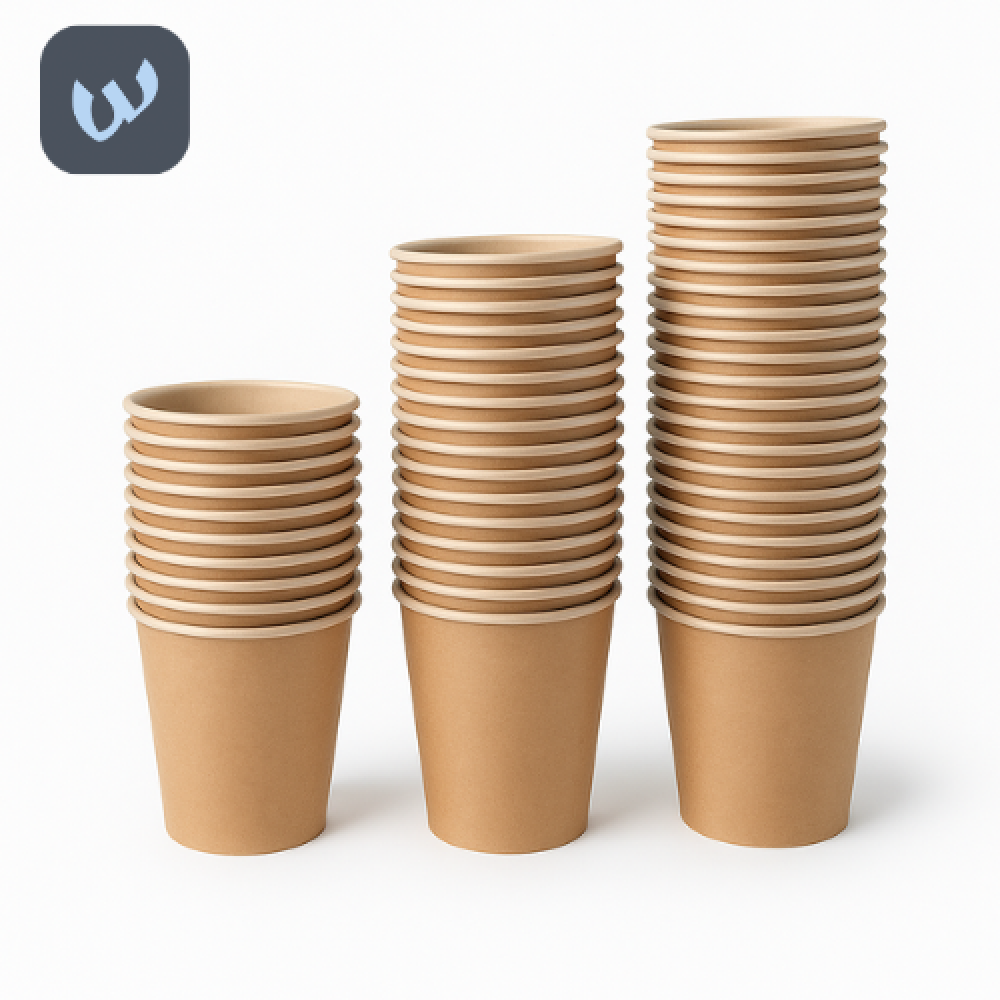 ☕ أكواب قهوة ورقية كرافت – بدون غطاء – متعددة المقاسات – بالجملة